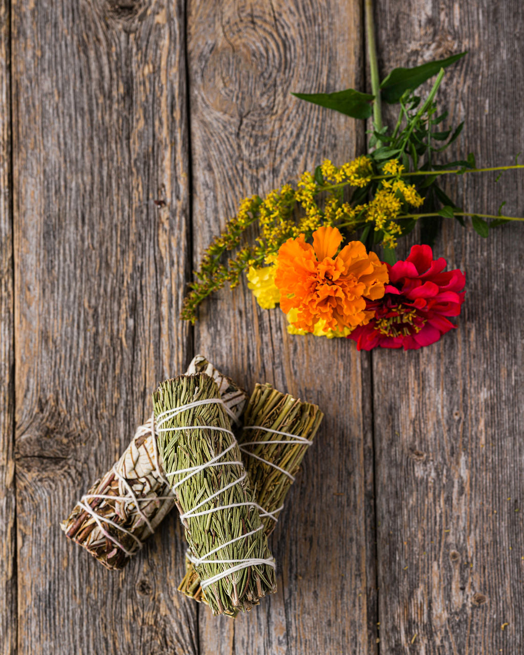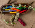 · Three organic botanical smudge sticks, your choice of: