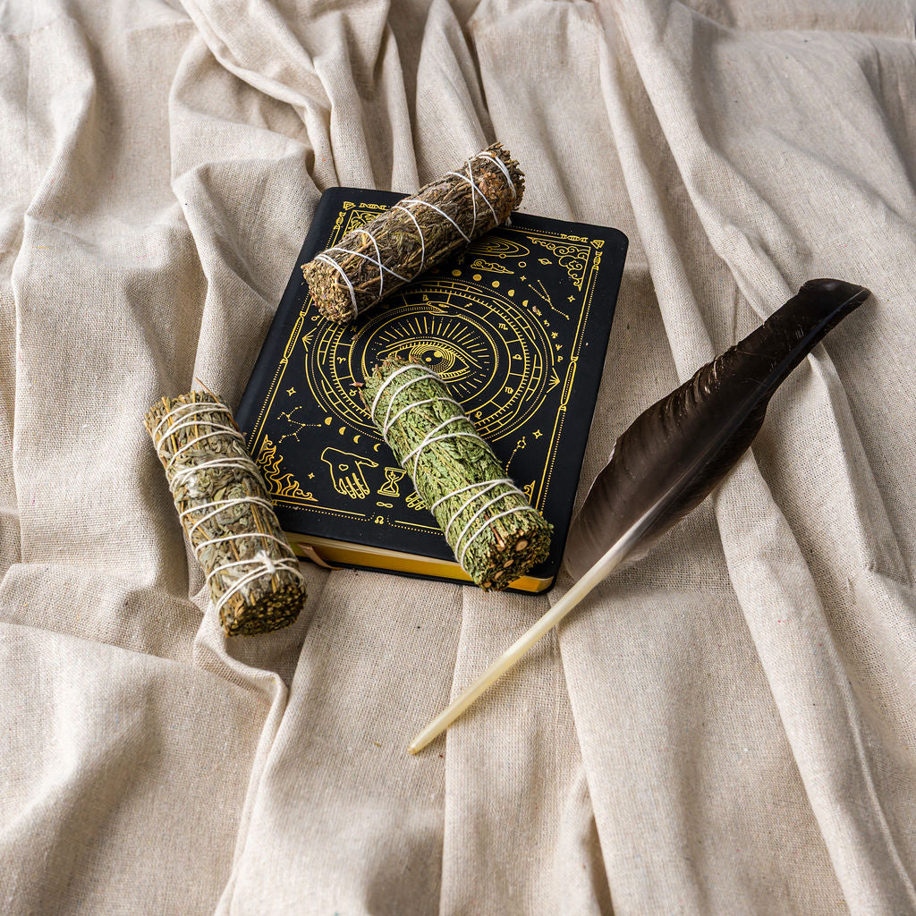 Let nature clear the path. This trio of hand‑wrapped organic sage bundles brings the purifying breath of the land into your space—cleansing, grounding, and reviving with the quiet wisdom of plants. Each bundle comes with a plantable seed‑paper band so after the smoke settles, you can plant it and grow wildflowers.